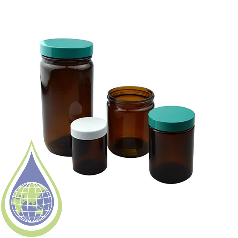 2oz (60ml) Amber Glass Straight Sided Round with 53-400 Green Thermoset F217/PTFE Lined Cap Attached Minimum Order Quantity 1 case Pieces per case 24