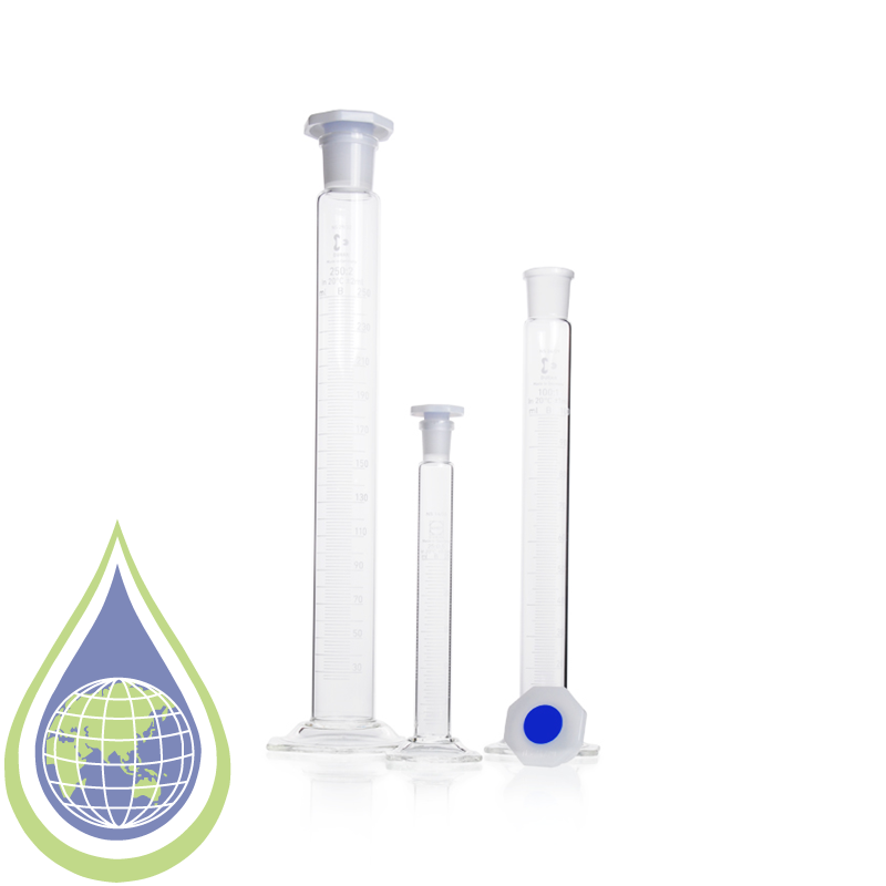 DURAN® Mixing cylinder, hexagonal base, class B, white graduation, octagonal PE-stoer
